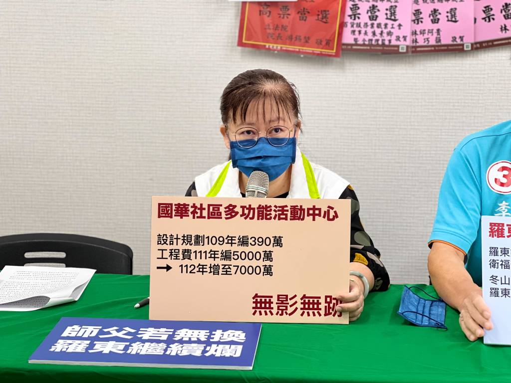 張蕙蘭代表示,國華社區多功能活動中心也是一樣,109年編了350萬規劃設計(發包金額3,499,823元),結果原本工程費111年編5千萬,還沒招標就在明年預算要增至7千萬元。吳秋齡這樣不斷玩數字遊戲,工程預算爆增,必須對鎮民清楚交代。