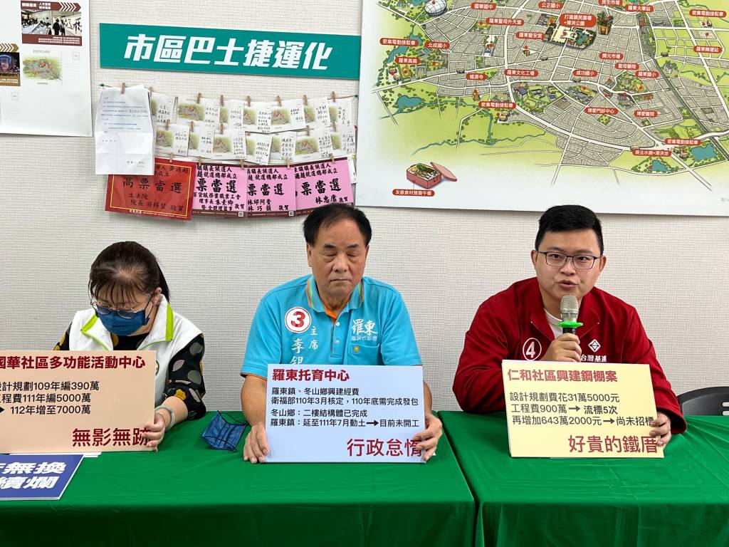 羅東鎮代表會主席李錫欽、縣議員候選人林意評及張蕙蘭代表發現,吳秋齡鎮長就任3年多,推動了幾項公共建設只聞樓梯響、不見人下來,只規劃、不動工,規劃設計後、工程一直流標,就算增加了近兩倍工程費用也沒下文。在在顯示鎮公所對於公共建設的不用心,浪費公帑,也傷了鎮民的期待與託付。代表會主席李錫欽等人,今(27)日在黃適超競選總部共同召開「師父若無換、羅東繼續爛」記者會。