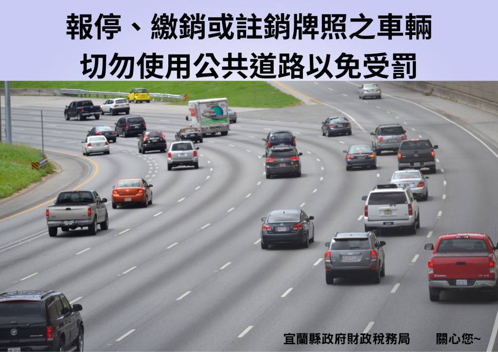 宜蘭縣政府財政稅務局表示,車輛應依規定於期限內辦理檢驗,逾期未檢驗經監理機關註銷牌照後,使用公共道路被查獲者,除補稅外,須另處應納稅額2倍以下的罰鍰,請民眾注意避免受罰。民眾如有使用牌照稅相關問題,請撥打免費服務電話0800-396969或(03)9325101轉140-148洽詢。另如有燃料使用費或汽機車過戶、異動等問題,則請向各地監理機關洽詢。