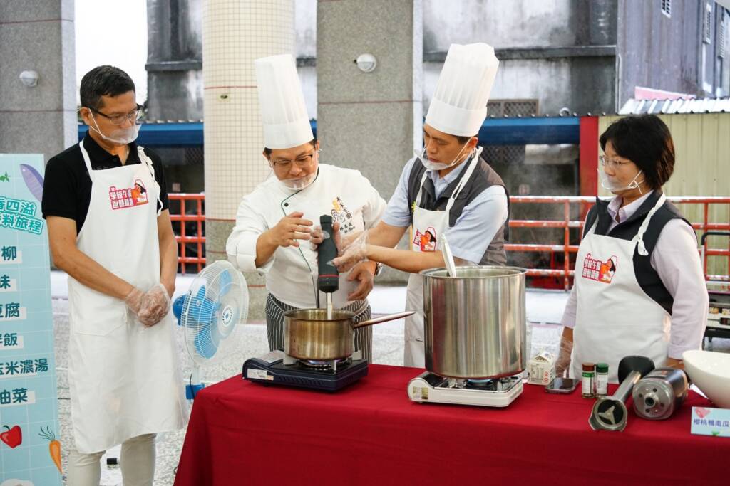 計畫針對縣內供應20所學校的3家團膳廠商(宜珍實業社、全順餐盒食品工廠及慶豐團膳有限公司)中央廚房進行輔導;由團膳豐富經驗的小周師分享高鈣料理講座,分享調整規格與風味的策略,搭配學童偏好設計烹煮模式,協助校廚精進廚藝技巧;邀請具豐富烹飪經驗的林奕成主廚及林錦成主廚,深入央廚實地輔導,傳授分段料理技術。透過巧妙使用鹽與醋去除食材雜味,再以香料、醬料及滷包入味,創造出層次豐富的料理。例如以均質機製作營養濃湯、以咖哩粉與香菇爆香提味、或以泡菜與番茄醬調和酸度等方式,打造辛香四溢、令人食指大動的營養午餐。除了口味與營養兼顧,食品安全也不容忽視,同步辦理校園餐飲從業人員食品衛生研習,邀請黃俊儒教授指導校廚與幼兒園餐食製備人員,食品良好衛生規範與調味醬管理,分享廚區環境病媒防治實務,推廣惜食減廢與降低碳排,實踐永續健康飲食的理念,建立均衡飲食及珍惜食物等觀念。