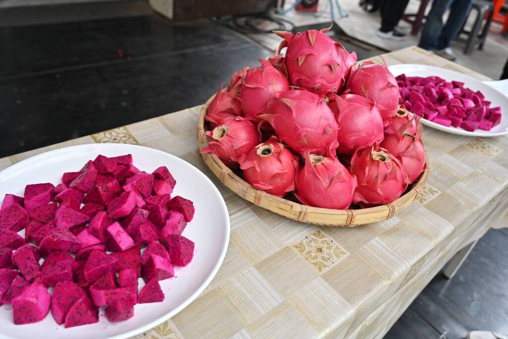 114年蘭陽紅龍果品質評鑑競賽已於7月30日在羅東鎮農會辦理完成,競賽分為紅肉組及甜王組。其中紅肉組則是由員山鄉農會所輔導之紅龍果產銷班班員連續三年(112年至114年)囊括了所有獎項,並由員山鄉農會李定紘農友奪下紅肉組冠軍;吳智瑋農友榮獲甜王組第一名,宜蘭縣代理縣長林茂盛今(6)天特到府恭賀及張貼紅紙,並感謝員山鄉農會用心的輔導紅龍果農友,讓農友生產出更高品質的果品。