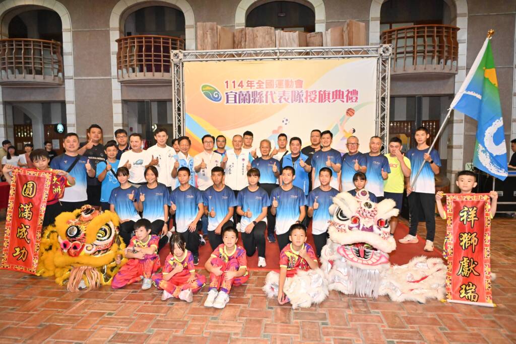 宜蘭縣代表隊參加114年全國運動會授旗典禮今(9)日上午9時在縣府縣民大廳舉行,由林茂盛代理縣長親臨會場為本縣代表隊授旗,並由宜蘭縣體育會蔡岡志理事長接旗,期許選手們在競賽場上全力以赴,在各項賽事上能佔魁首,奪后冠!林茂盛代理縣長表示,近二年來本縣在全國運動會、全民運動會、全中運及全國原住民族運動會等國內四項體育賽事上,整體總奪牌數在22縣市中皆在前十名內,能有如此豐碩得表現,需感謝宜蘭縣體育會蔡岡志理事長及各單項委員會主委、總幹事及基層教練們,對於提倡運動風氣的投入和付出,更感謝選手們為了自我築夢,不畏風雨及無懼烈日下堅韌不拔的訓練,期勉選手們在賽會期間發揮平日所學,展現運動家堅毅態度與精神,在這場運動盛會中不留遺憾,戰勝自己來奪佳績,為縣爭光。