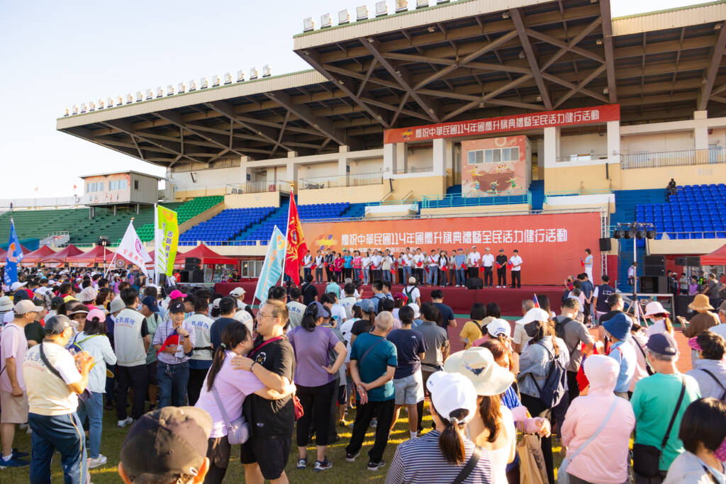 宜蘭縣政府於今(10)日上午6時30分,在宜蘭運動公園田徑場舉辦「慶祝中華民國114年國慶升旗典禮暨全民活力健行活動」,邀請縣民與到訪宜蘭遊客,一同慶祝114年中華民國生日快樂,同時一起參與活力操及為健康而走健行活動,建構活力健康的樂活蘭陽。