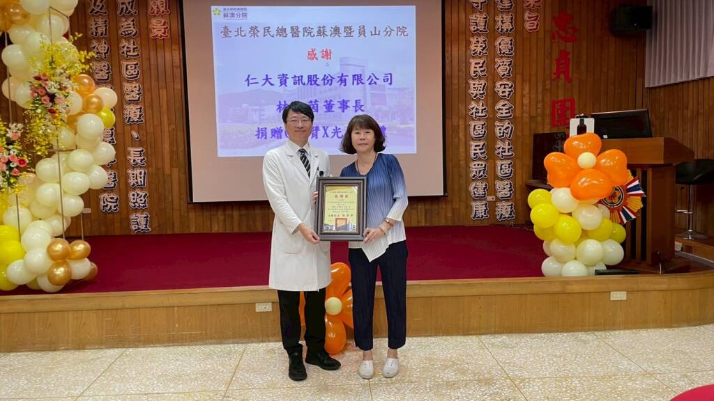 全國知名仁大資訊公司善盡社會責,該公司林士茵董事長為提升偏鄉醫療環境,今(23日)上午在北榮總醫院蘇澳分院,捐贈一台全新(移動式C型X光機)價值240萬元,為北榮蘇澳分院帶來創院以來,首次醫療裝備捐贈。熊夢平代理院長致詞時表示,感謝仁大公司林事長捐贈,C型移動式X光機加入,為本院醫療韌性新添生力軍,這台X光機可提供手術術中影像導引和床邊攝影,讓醫師在手術時能即時監控、精準定位,並減少病患移動的風險與時間,特別適用於骨科等手術,以及急重症或行動不便的病患的床邊檢查,熊夢平代理院長致贈感謝狀,也讓分院醫護同仁感受到滿溢的溫暖。