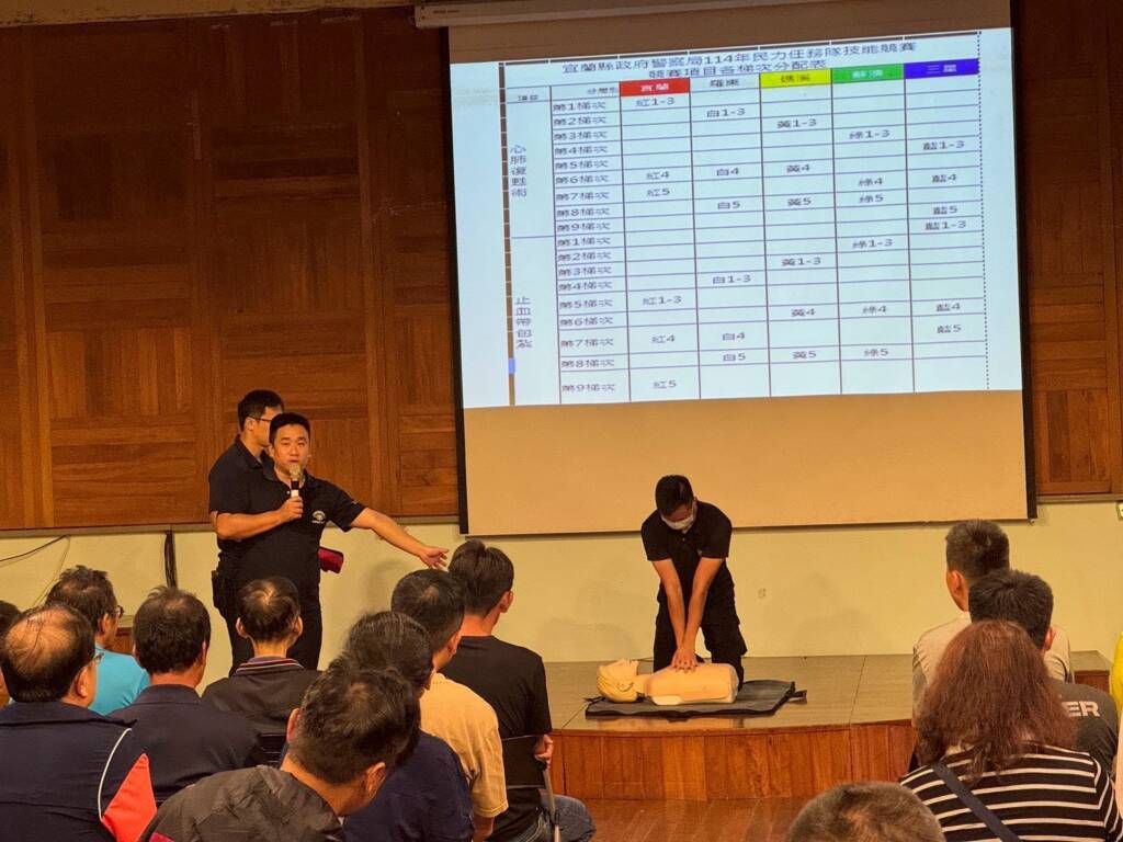 為提升民力協勤時,面對現場需求的即時支援能量,宜蘭縣政府警察局於10月24日,假宜蘭縣政府文康中心辦理「民力任務隊技能競賽」,由民防總隊所屬民防、義警、義交及山警等各民力大隊成員參與,競賽以心肺復甦術(CPR)及止血帶包紮操作為主要項目,透過實作與檢核,強化民力在突發事故現場的緊急應變與初步救護能力。競賽以分局為單位(每隊10人),參賽人員須於限定時間內完成初步救護驗證操作技術,展現平日到訓成果。競賽取前2名受獎,測驗結果由羅東分局,及宜蘭分局兩分局所屬民力人員表現脫穎而出,分別榮獲第1名及第2名。活動當日,局長及各分局長均到場加油、鼓勵。局長劉炯炫對於民力長期協助警政工作特別表示敬佩之意,並強調強化緊急救護技能,不僅有助於提升協勤技巧,更可於突發事故現場即時支援協助,有效守護縣民生命安全。宜蘭縣警察局表示,近期花蓮馬太鞍溪堰塞湖溢流事件,再次喚醒社會各界防災救災的意識,以及凸顯救災不僅是政府的責任,更需民眾共同參與。所謂「警力有限、民力無窮」,民力長期奉獻心力、堅守崗位,藉此訓練、競賽展現訓練成果,凝聚民力向心力,達成全社會防衛韌性整備工作。