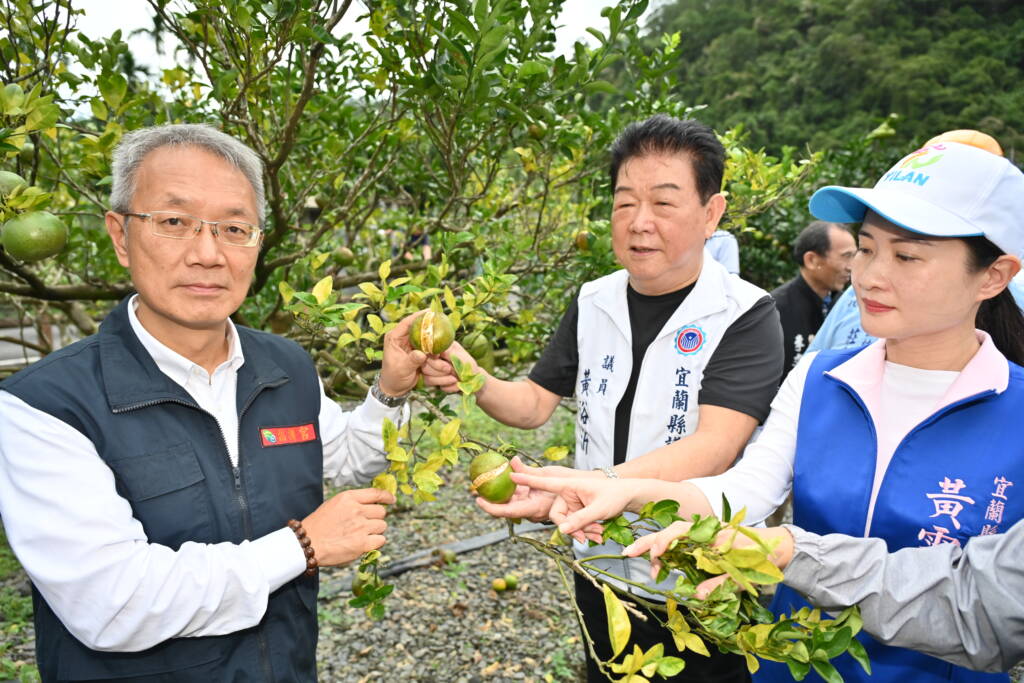 鳳凰颱風外圍環流及東北季風共伴影響,連日豪大雨造成宜蘭縣各鄉鎮農作物嚴重受損。宜蘭縣代理縣長林茂盛今(12)日上午會同相關單位前往員山鄉吳永和農友果園實地勘查,關心農民損失情形,並指示縣府全力啟動農損查報及協助作業。