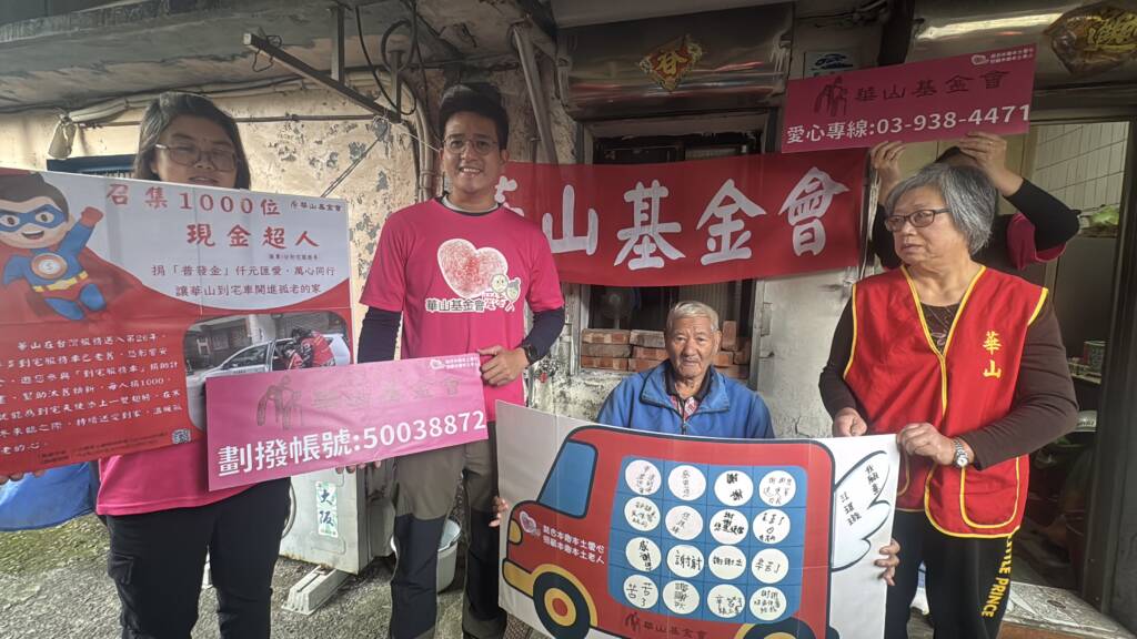 然宜蘭縣的「到宅服務車」行駛逾15年,屢屢維修,不僅拖慢服務效率,更增加偏鄉陪醫與日常協助的安全風險。為確保弱勢長輩能持續獲得即時、穩定、安全的服務,華山基金會發起「到宅服務車捐助計畫」,順應政府普發 1 萬元現金,呼籲民眾將善款注入公益,「仟元匯愛、萬心同行」,共同召集 1,000 位「現金超人」,讓新服務車能在歲末寒冬持續開往孤老家中,把溫暖送入每一位的生活,老不孤單。