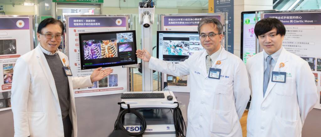 陽明交大醫院建置的「智慧複合式手術室」,是此次展出的一大亮點。外科部蔡建和主任指出,該手術室的核心優勢在於結合3D導航與即時影像,能將手術精準度推向頂峰,有效實現跨科別、高難度手術的安全與準確性,大幅降低病人風險。透過這項劃時代的科技,醫院正式進入智慧影像引導手術的新階段。傳統脊椎手術常有神經損傷風險,脊椎關節微創中心馮尚文醫師分享,醫院導入的「微創電腦導航脊椎手術」,提供鋼釘定位的即時回饋,將椎弓釘置入準確率極大化,有效降低神經損傷,加速患者復原,這項技術已成功應用於脊椎側彎、長節固定等近百例複雜個案,為病患帶來低風險、高效益的治療選擇。