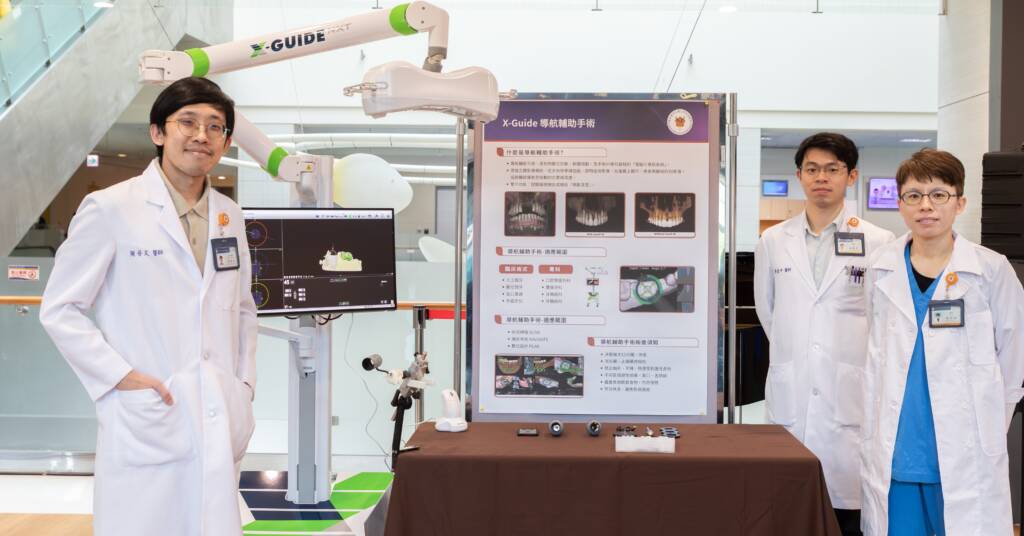 另外,面對植牙的潛在風險,陽明交大醫院也引進新世代的「X-Guide 3D 植牙導航系統」,由牙科張妤欣醫師說明,這套系統猶如「牙科GPS」,手術中利用光學追蹤,如同GPS導航即時導引器械和人工植牙方向,給予醫生更準確的資訊,提供比傳統精準11倍的植牙手術,不僅安全快速完成微創植牙,術後傷口小,降低腫脹疼痛感,縮短診療時間,部分患者更可實現「一日完成」的智慧化治療體驗。