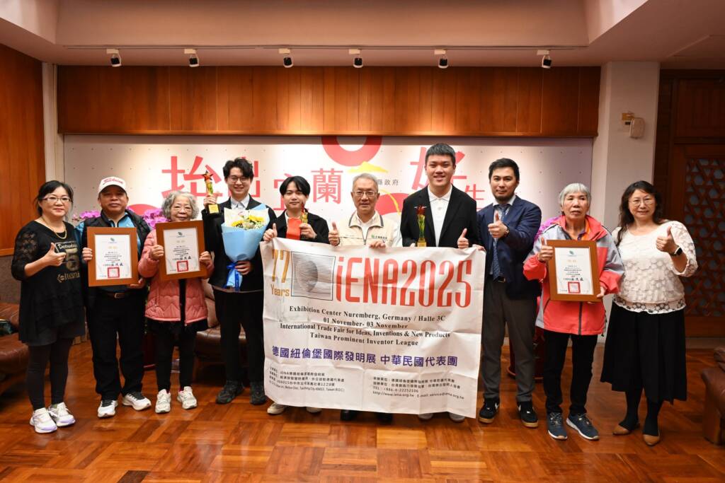 iENA德國紐倫堡國際發明展今年邁入第77(屆)年,為全球首創、歷史最悠久之創意發明展,每年來自世界各地約有500~800多件作品參賽。本(114)年度參展單位中原大學,其參展作品主要應用於「全內反射散射量測的裝置與方法」,榮獲金牌肯定,另參展單位慈濟大學,參展作品「智能約束裝置」,榮獲銀牌。前述得獎作品,其中發明人之一,包括李祐瑋、游子毅及楊佳豪,皆為宜蘭人,縣府肯定宜蘭在地縣民為國爭光,林代理縣長於114年12月11日在縣長會客室接見得獎者,並給予表揚勉勵,鼓勵工商學術界研究、創新及發明。
