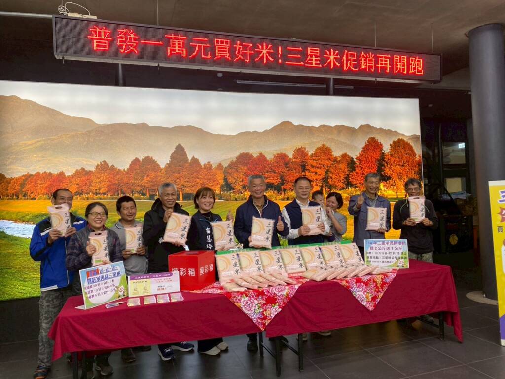 因應政府普發一萬元政策,帶動民生消費需求,三星鄉公所宣布備受鄉親熱烈支持的「三星米促銷活動」將再次推出。先前於11月初舉辦的好米促銷活動在短短兩週內銷售一空,鄉親反應熱烈。為回應民眾期待,鄉長李志鏞今(12)日宣布再度啟動同等優惠,自12月15日至12月26日上班時間,凡購買2公斤包裝米,即加送同品項1公斤優選三星米,限時限量1,000包,於活動期間送完為止。