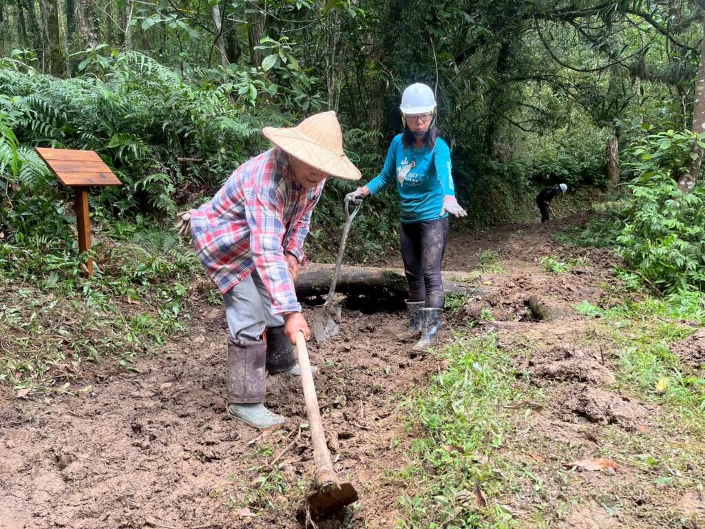 今年透過三場工作假期的大量人力,從水圳起點沿路完成2公里多的保養與修復,並於年底完成通水。通水不僅能穩固底層,也能讓水流帶走落葉與沈積物,使水圳功能得以長期維持。學員們在看見水流重新在圳溝內流動的那一刻,深感所有辛勞都值得了。