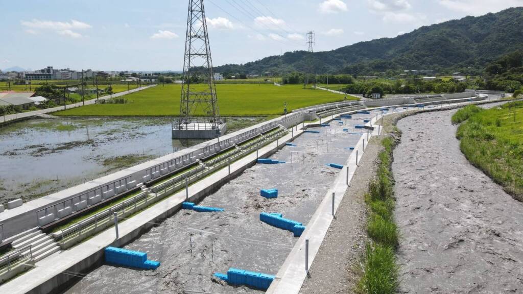 安農溪輕艇激流標桿競賽場地是國內第一座體育設施結合水利技術指標工程,自從規劃設計到完工,面對國際賽場規格、選手使用需求、防洪安全、落實生態保育及施工期程緊迫等諸多挑戰,透過跨部會機關合作及在地溝通協調逐一突破,本案工程導入智慧化油壓監控系統,可精準控制及預防倒伏堰壓力過高,提升安全管理機制,另藉由可調整式擋水塊相互配合,創造出不同難易度激流訓練及競賽環境,減少選手及教練海外移地訓練費用及時間。
