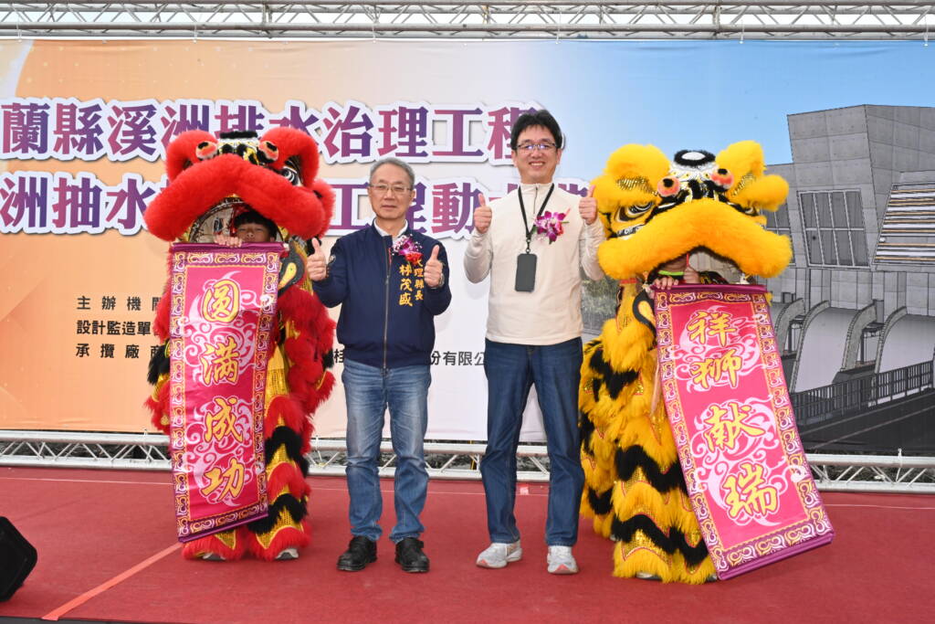 宜蘭縣政府於115年1月31日舉辦「溪洲抽水站新建工程」動土典禮,由宜蘭縣政府代理縣長林茂盛親自率領縣府團隊,會同中央機關代表、地方民意代表及地方鄉親共同祈福動工。工程完工後,將大幅提升溪洲排水系統排洪能力,有效改善七賢村及周邊低窪地區長年飽受淹水之苦,確保民眾生命財產安全。
