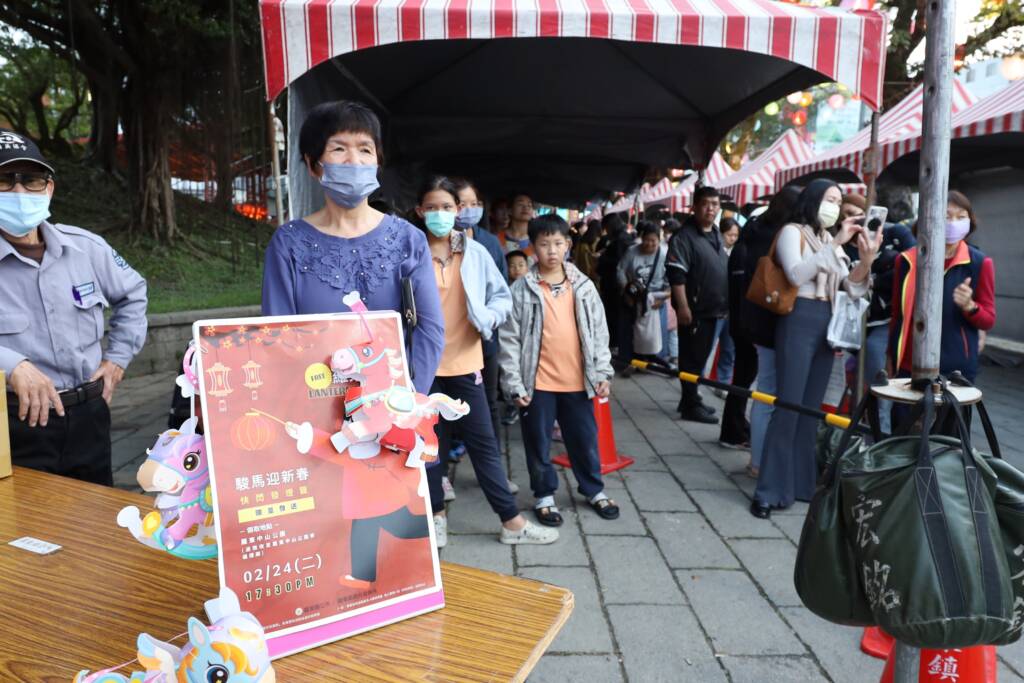 今(24)日晚上17時30分在羅東中山公園「駿馬迎春」春節主燈旁,除了東安社區帶來的精彩表演外,由羅東鎮長吳秋齡帶領里長們,一起帶來羅東特色舞蹈「羅東第一名」,為迎接羅東藝穗節25週年慶暖身,吸引眾多遊客駐足觀賞。晚上羅東限定「快閃發燈籠」的活動還未開放現場就有許多民眾等待,開始發放30分鐘內快閃,已索取完畢。