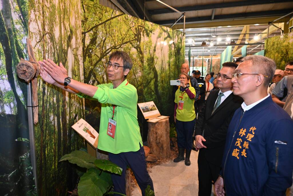 展區利用永續經營杉木與竹材打造戶外設施,從平衡木到擺盪遊具,孩子們在觸摸自然材質與肢體挑戰中,感受森林的生命力,讓永續觀念在遊戲中自然萌芽。