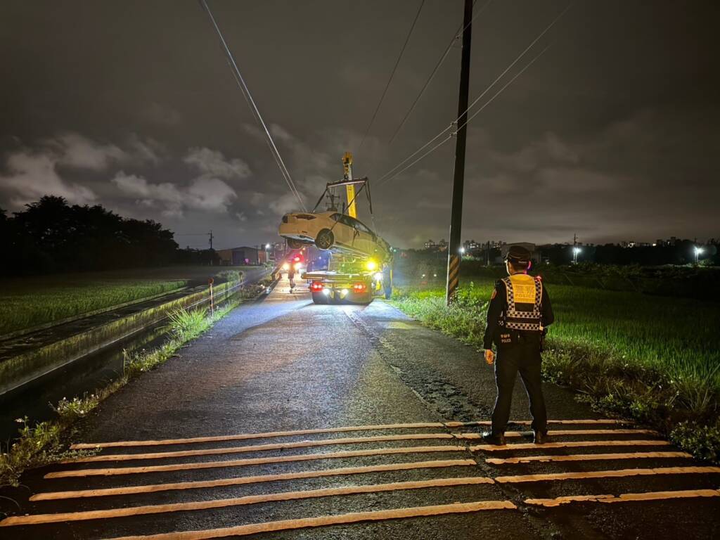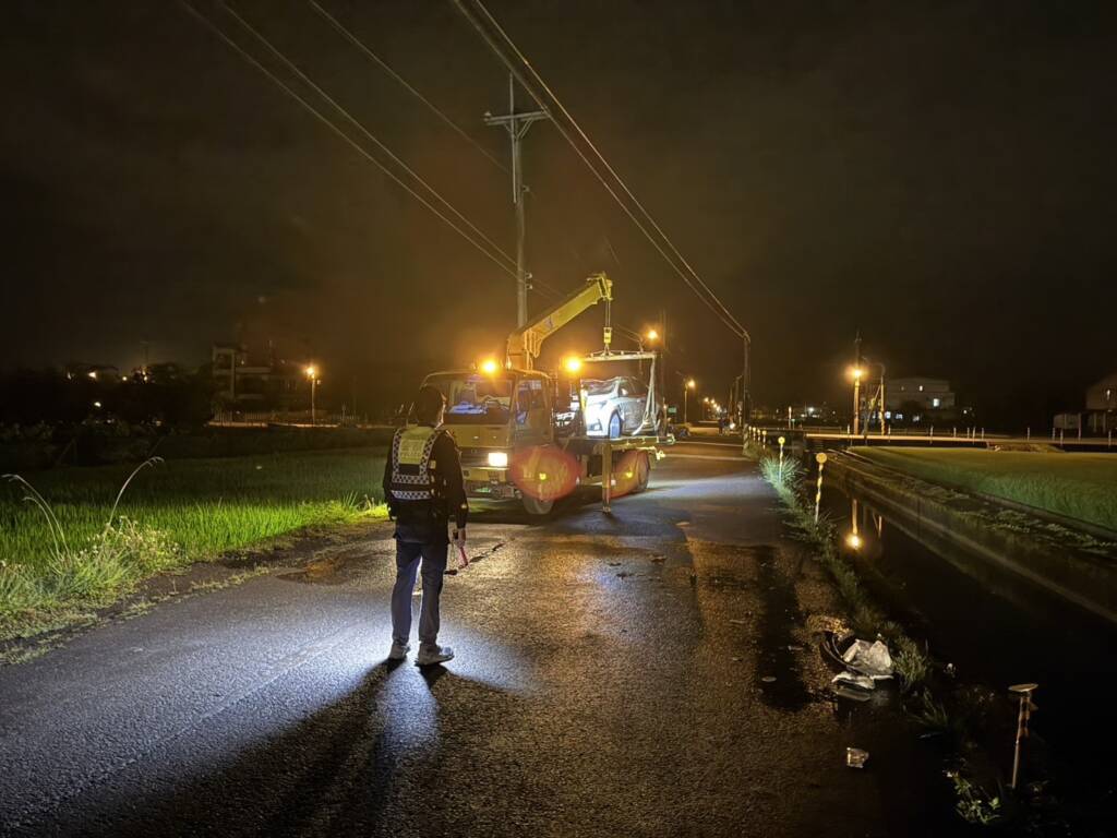 宜蘭市汽車自撞電桿翻落大排 警方呼籲駕車應注意車前狀況