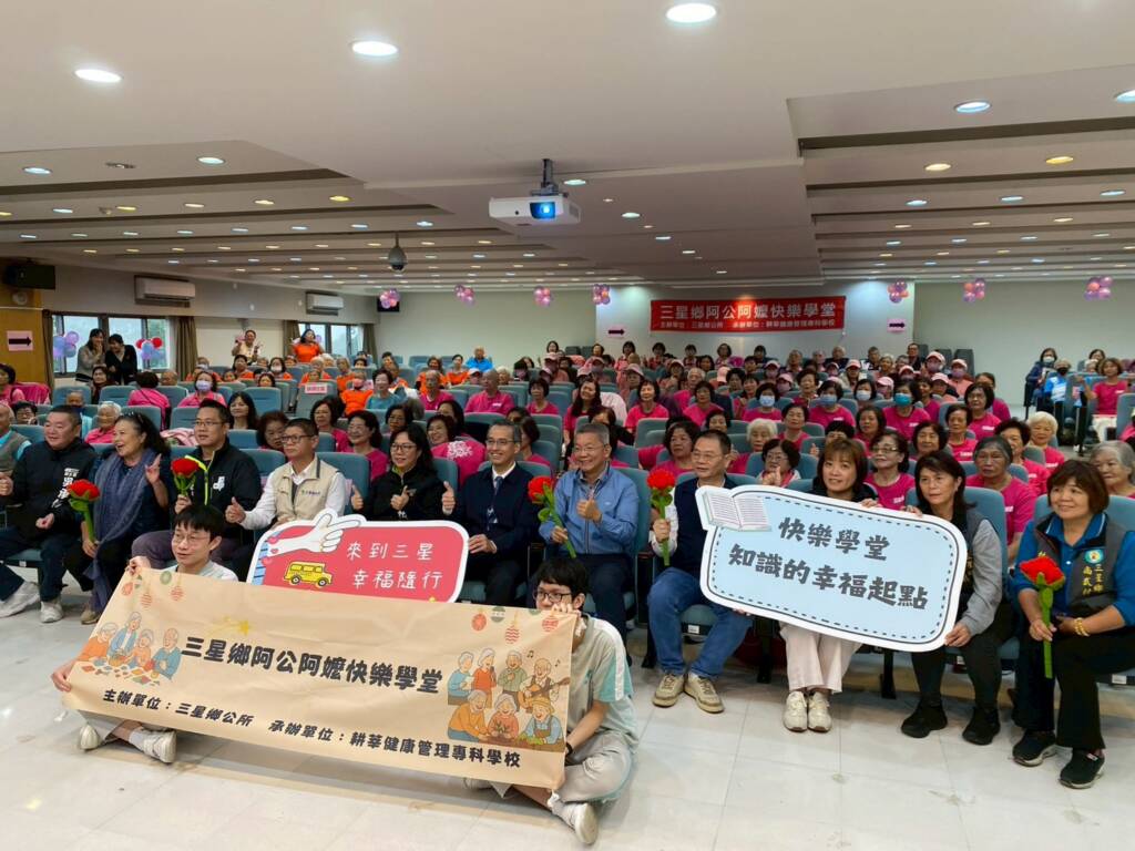 【尖端新聞中心】 三星鄉公所推動的「阿公阿嬤快樂學堂」於(3)日在耕莘專校宜蘭校區舉行結業典禮,現場近200位長者齊聚一堂秀才藝,為今年度的服務進行回顧,並由參與課程的長輩們上台展現學習成果。三星鄉鄉 …