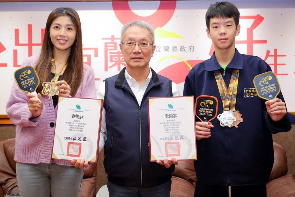 【尖端新聞中心】 宜蘭縣政府於12月4日在縣長會客室表揚參加第二屆「匹克球世界盃」(Pickleball World Cup)之優秀選手——蔡萱選手及宜蘭縣立羅東國民中學蔡瀚琛選手。該賽事於10月27 …
